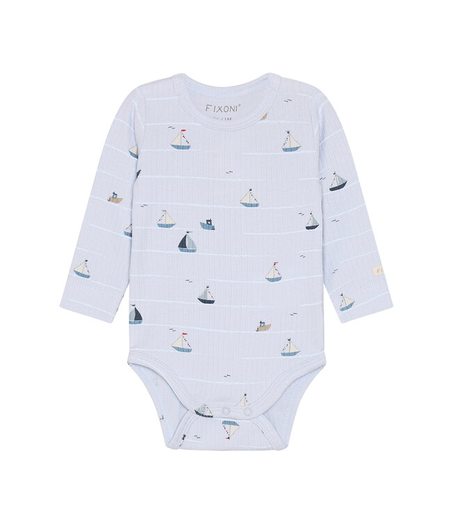 Fixoni Langarmbody gerippt mit maritimem Schiffsprint