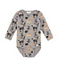 Ein Langarmbody aus einem Tollen Materialmix aus Bambusviskose/Baumwolle. Der weiche Sweatstoff eignet sich bei empfindlicher Haut. Der Body ist mit Tieren bedruckt. Mit Druckknöpfen im Schritt und an beiden Schultern. Bambusviskose wirkt beruhigend bei Neurodermitis.