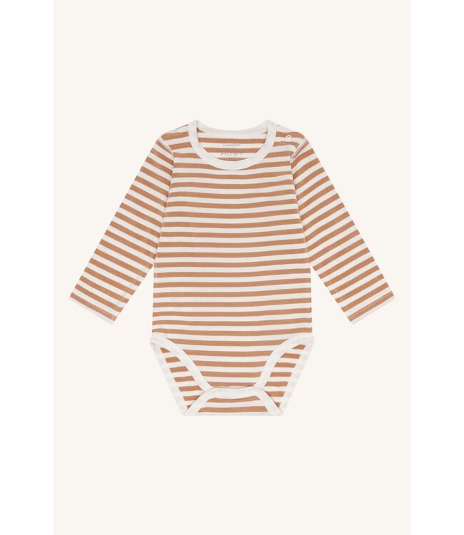 Hust and Claire Langarmbody aus feiner Bambusviskose überzeugt mit schlichtem skandinavischem Design und zeitloser Streifen-Optik. Der Uni Body ist unisex, vielseitig kombinierbar und passt zu jedem Outfit – egal ob für Mädchen oder Jungen.
