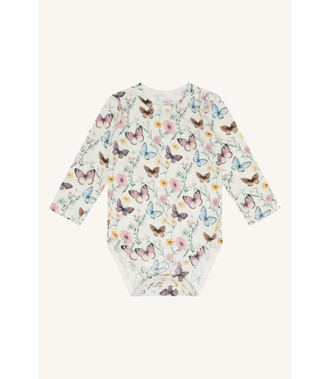 Hust and Claire Langarmbody aus feiner Bambusviskose mit romantischen Schmetterlingen und Blumen bedruckt.