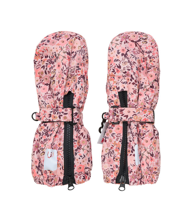 Minymo Fäustlinge mit Daumen - Klettverschluss - Reissverschluss Blümchen