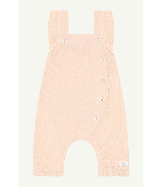 Die Hust and Claire Musselinhose „Melik“ ist eine romantische Latzhose aus weicher Biobaumwolle in leichter Musselin-Qualität. Zarte Rüschenträger verleihen dem Modell eine verspielte Note und machen es zu einem besonderen Blickfang.