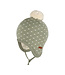 Warme Bommelmütze aus einem temperaturregulierenden Materialmix aus: Merinowolle, Seide und Biobaumwolle.Umschliesst auch die Ohren und den Gesichtsbereich gut. Innen ist die Mütze aus Bio-Baumwollfleece gefüttert. Mit Bindeband. Kleine Pünktchen machen die Mütze besonders süss. Von Pure Pure by Bauer.