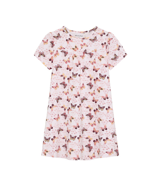 Minymo Nachthemd Schmetterlinge aus Bambusviskose/Baumwolle ist ein leichtes und besonders angenehmes Nachthemd für Kinder, das mit seinem fröhlichen Allover-Print aus Schmetterlingen und Blumen sofort verzaubert.