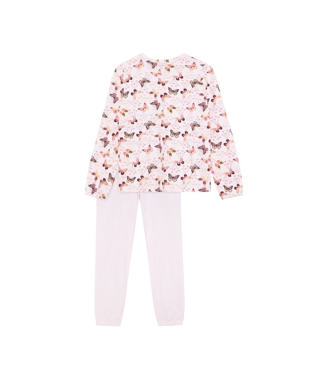 Minymo Pyjama Schmetterling aus Bambusviskose/Baumwolle ist ein bequemes Schlafanzug-Set für Kinder, das mit seinem feinen Allover-Print aus Schmetterlingen und zarten Blumen eine ruhige und zugleich verspielte Optik schafft.