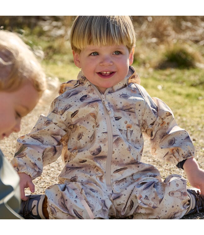 Ein funktionaler und zugleich stilvoller Regenoverall, der Kinder trocken hält und gleichzeitig mit seinem kreativen Weltraum-Design begeistert – perfekt für jedes Wetter und jedes Abenteuer.