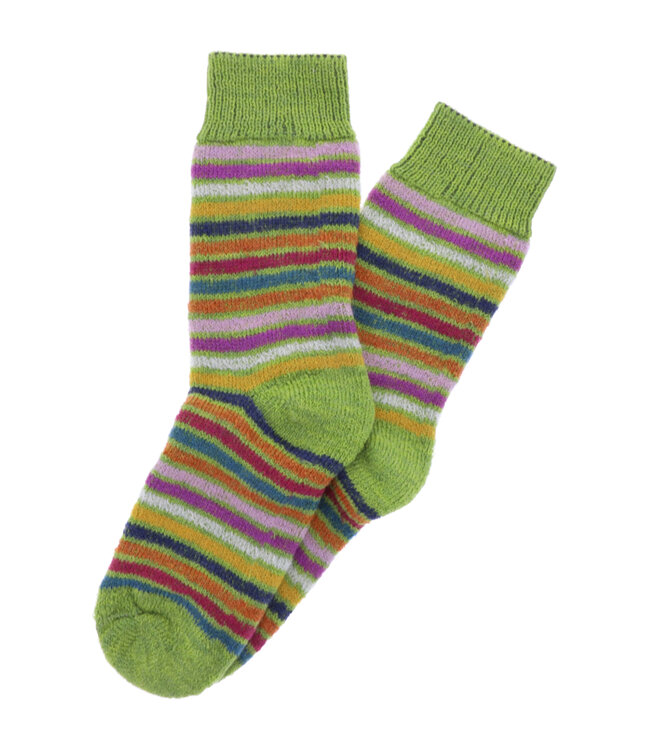 Vollplüschsocke - bunt geringelt - Wolle - maigrün
