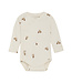 Body cache-cœur à manches longues en coton biologique certifié GOTS. Ce body se ferme haut pour protéger également la zone du cou. Il présente une structure côtelée et est imprimé de motifs de mûres. Les bords sont ondulés pour un détail particulier.